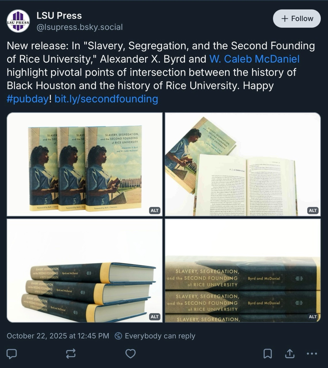 LSU Press reminds me that today is officially publication day for the book! Thanks @lsupress.bsky.social. See https://bit.ly/secondfounding for more.