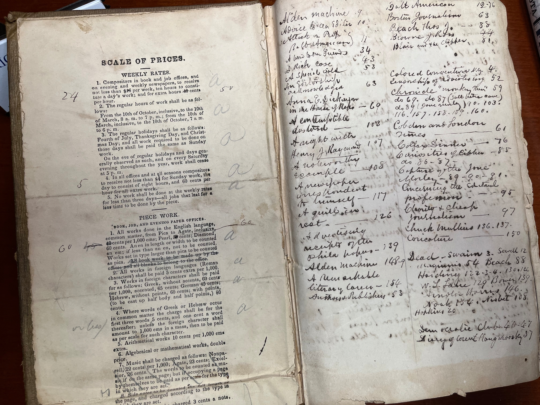 A student in my Civil War history course brought by an interesting artifact she once found in a Baltimore used book store. It appears to be a scrapbook kept by a journalist during the 1860s, with an index of topics in the front. Very cool!